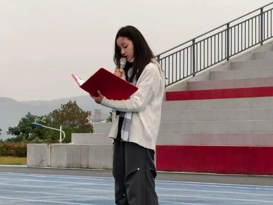 学管科副科长刘晓萱同志以“踔厉奋发担当作为 初心如磐勇毅前行”为题发表讲话。她从“爱家国、爱自己、爱智慧”三个维度,号召学及以家国情怀扎根时代,以自我超越追求卓越,以审慎规划锚定方向,鼓励大家以身入局、学成报国,书写青春担当。