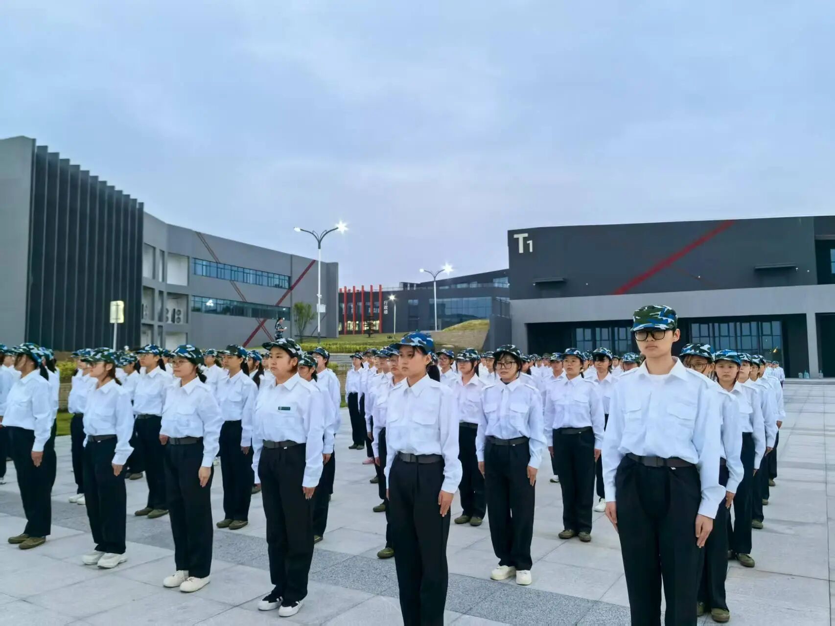 训练场上,新传学子身着统一军训服,头戴迷彩帽,在教官的严格指导下,认真开展站军姿、练队列等基础训练。他们身姿挺拔如松,眼神坚毅如炬,每一个动作都力求标准规范,反复打磨中尽显新传学子的韧劲与专注。从晨光微熹到暮色渐沉,训练场的每一处角落都留下了他们的身影,这不仅是对身体素质的锤炼,更是对意志品质的磨砺。
